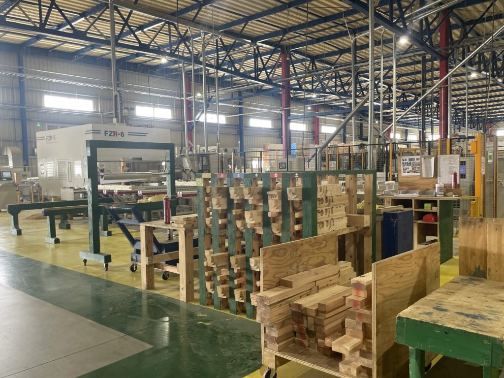 唐津(佐賀県)にあるこの工場は、2017年に熊本地震の被災地支援・復興支援を加速するために計画を前倒しし、九州進出を果たした最新鋭のプレカット工場です。