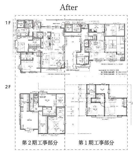 工事を二期に分けて行う段階的なリノベーションです。