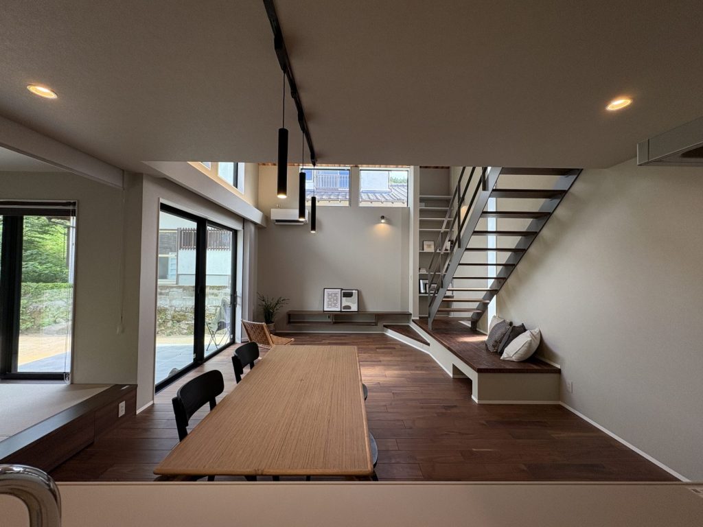 小上がりの和室は、地窓を採用して洗練された雰囲気に。ロールカーテンで仕切ることができるので、空間活用の幅が広がります。