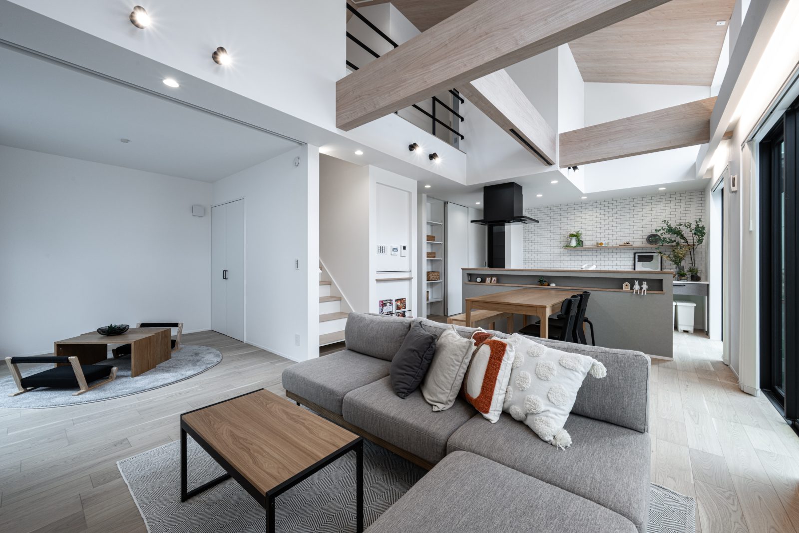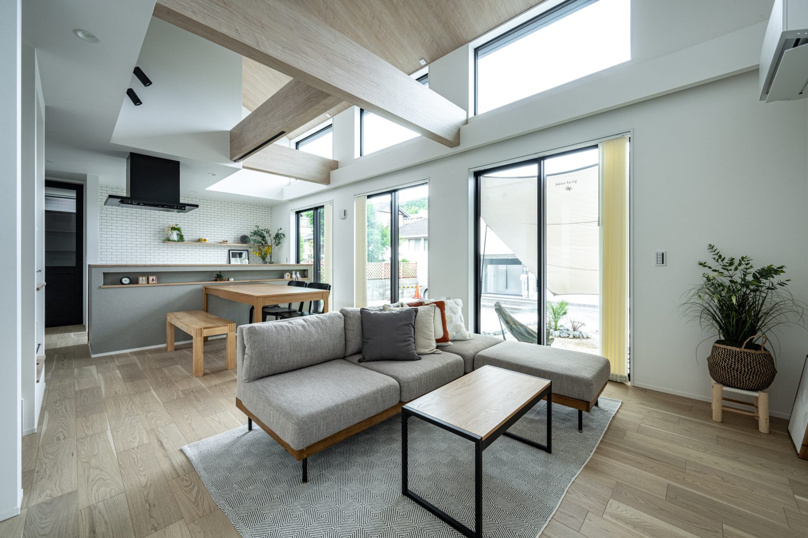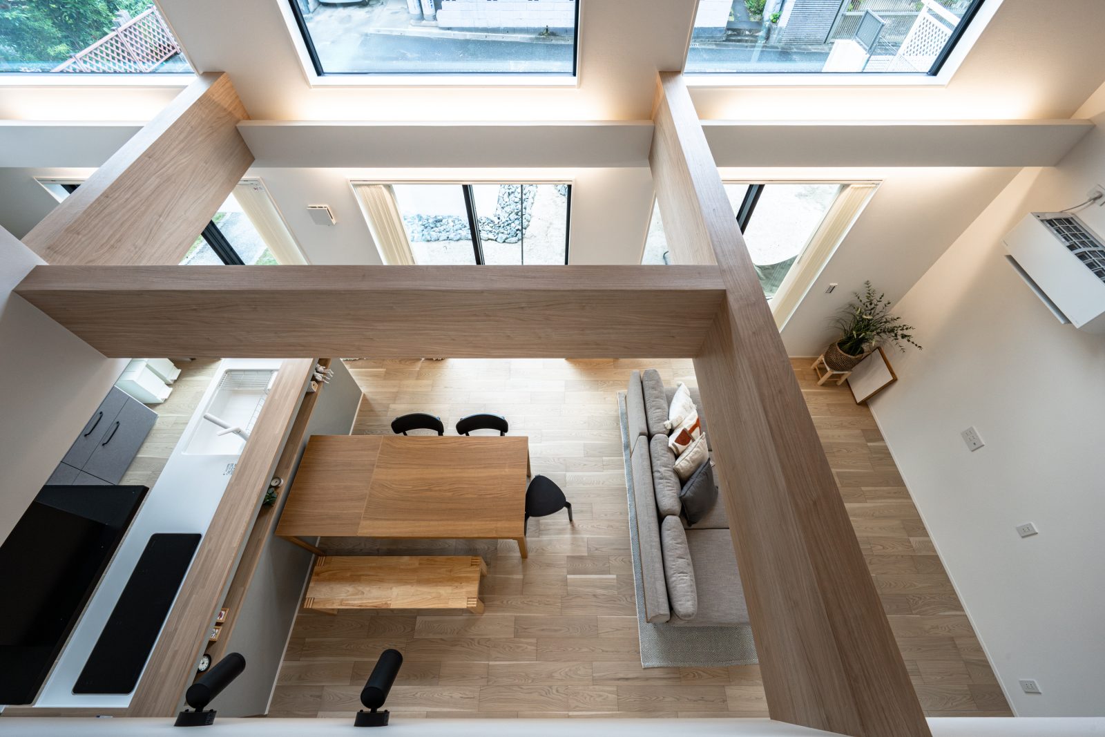 吹き抜けと大きな窓。圧倒的開放感の家