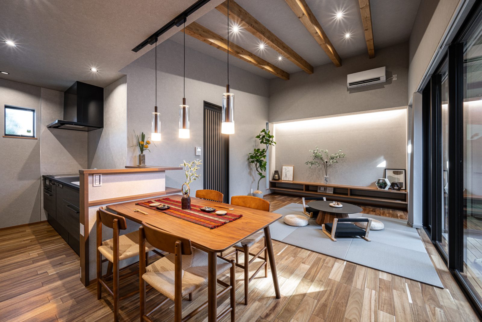 リゾート旅館のような和モダンスタイル、洗練された寛ぎ空間をデザインしています。