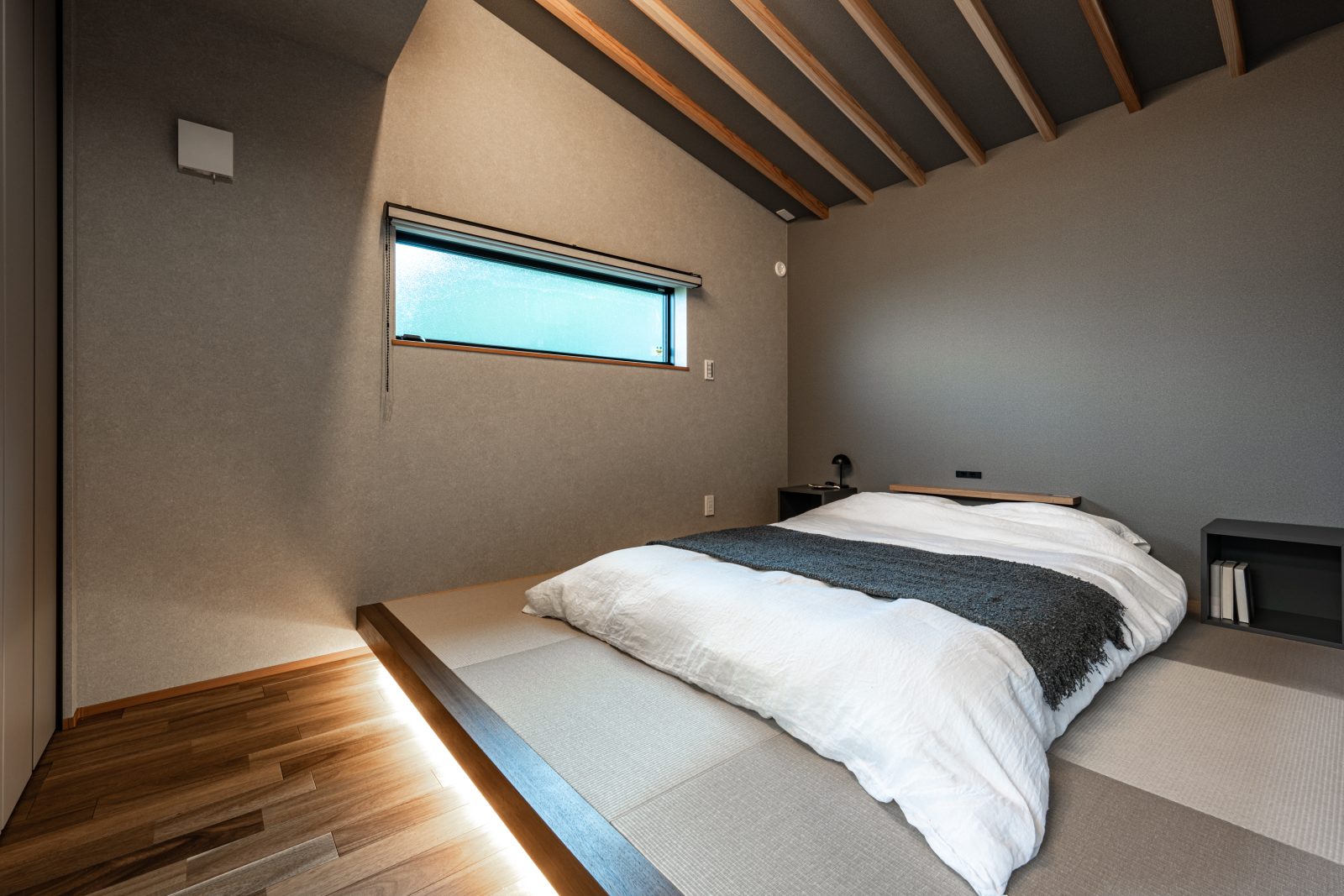 主寝室は旅館ライクな小上がり畳になっており、たっぷりと収納できるウォークインクローゼットをはじめ、すっきりと片付く収納提案になっています。